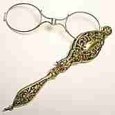 Une lorgnette, n. f.Una lorgnette, s. f. inv.Occhialetto per signora.
