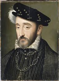 L'époux de Catherine de Médicis, Henri II de France (1519 -1559), était un homme de grande corpulence et d'une vitalité impétueuse. Il fut tué lors d'une joute équestre, après avoir été mortellement blessé à l'œil droit par un coup de lance. À ce point anxieux de se mesurer à Gabriel de Lorges, comte de Montgommery, Henri II ne s'était pas préoccupé de contrôler, dans les règles de l'art, la fermeture du heaume. Il s'éteignit dix jours après cette mortelle blessure. |